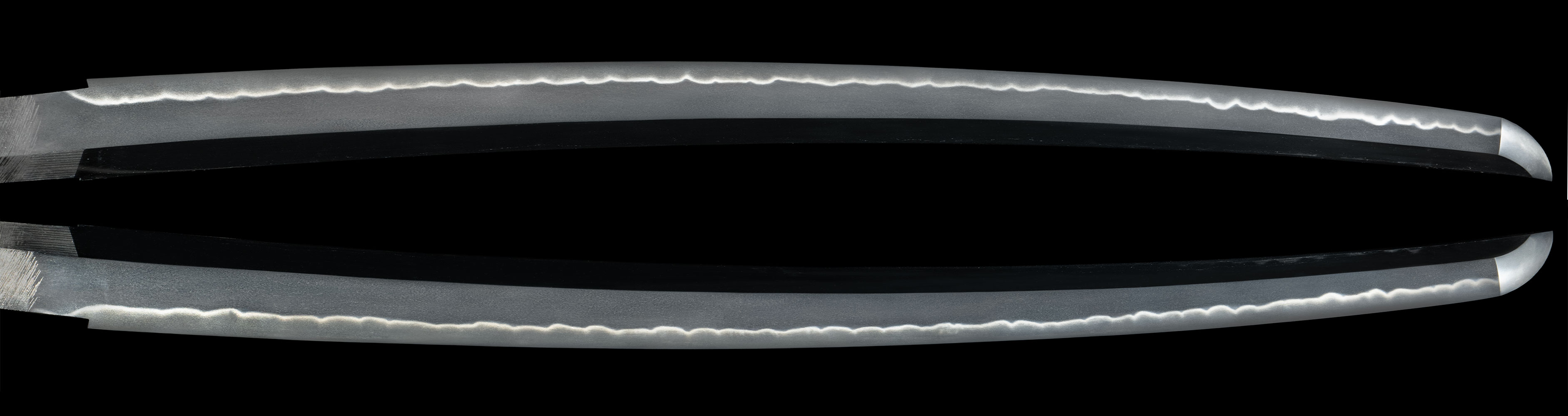 This sword has wide Mihaba, Slightly deep Sori, Big Sakihaba, The Nanboku-cho style of Oh-Kissaki is evident. Tsunda-Itamehada, Mokumehada, Mixed Small-Mokumehada, Jinie entered thick, Chikei entered fine and frequently, The exquisite Jigane is reminiscent of an ancient work, Small-Notare, Mixed Samll-Gunome, Small-Ashi entered frequently, Nioikuchi is soft and bright, This is a masterpiece of Kanemitsu copying.